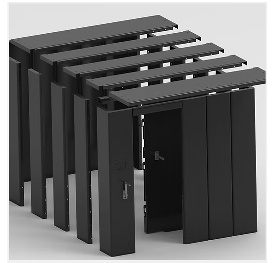 Our modular secure room is a heavy-duty structure constructed from 6 mm thick steel panels and assembled with internally locked bolts. It is fully modular, allowing modules to be added or removed to customize its size according to specific needs. The shelter can also be disassembled for transport and reassembled at a different location.