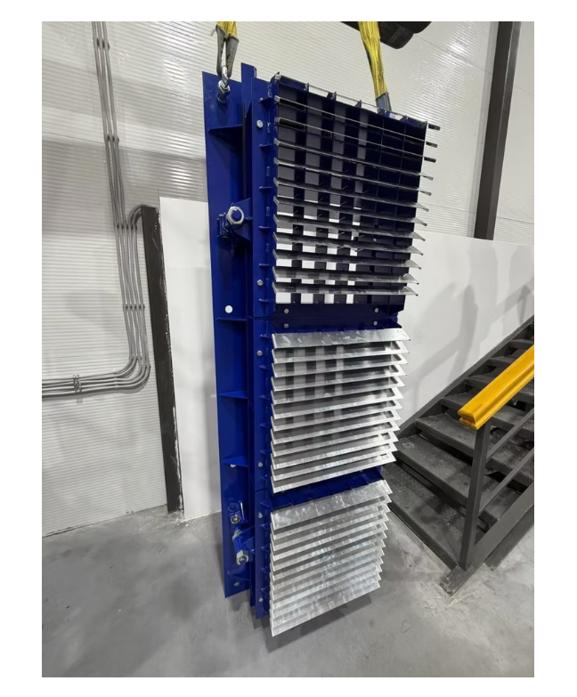 The UZS-25 is an assembly consisting of three UZS-1 explosion dampers mounted in a special metal housing and can be used as an emergency exit door/hatch or service door for shelter air ducts.The UZS protection section is designed to protect ventilation equipment in special-purpose buildings from the effects of a prolonged shock wave with a pressure of up to 10 kg/cm² (1000 kPa).The protective sections automatically close under the pressure of the blast wave, sealing ventilation openings or air ducts and providing protection against the blast wave penetrating the shelter.