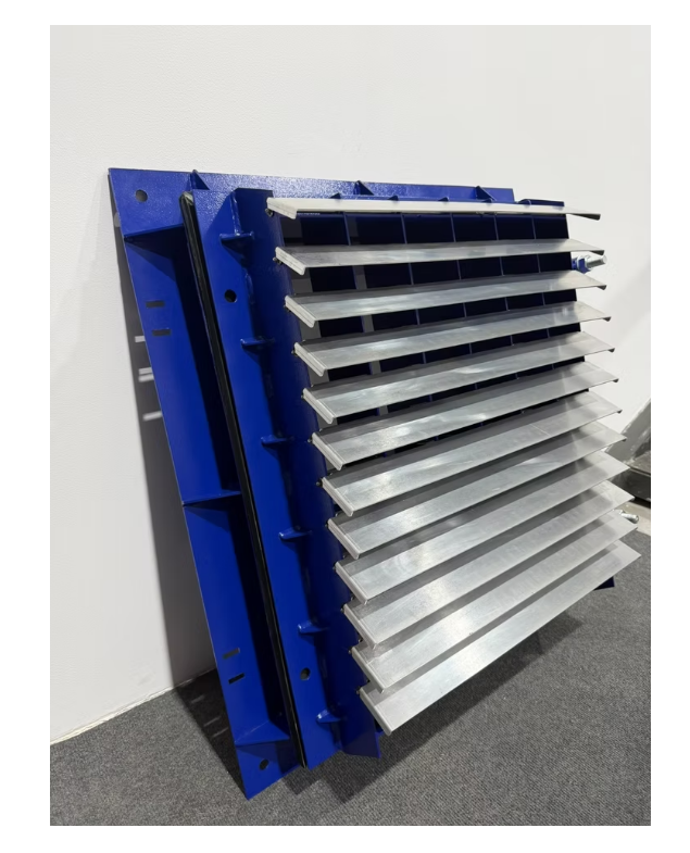 The UZS-8 is an assembly that includes the UZS-1 explosion damper mounted in a special metal housing and can be used as an emergency access panel.The UZS protection section is designed to protect ventilation equipment in special-purpose buildings from the effects of a prolonged shock wave with a pressure of up to 10 kg/cm² (1000 kPa).The protective sections automatically close under the pressure of the blast wave, sealing ventilation openings or air ducts and providing protection against the blast wave penetrating the shelter.